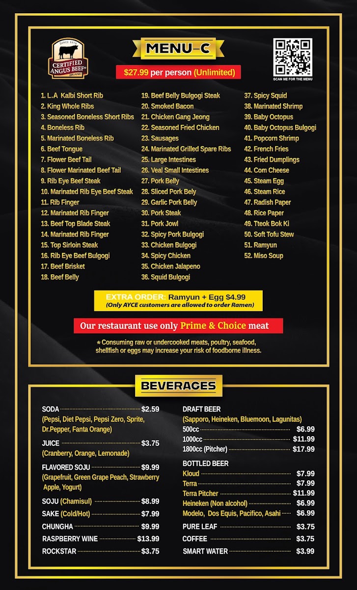 “ It was crowded upon entering the restaurant yet got seated right away. You have 3 menu choices for each price per group not individually. All the meats were surprisingly flavorful and aromatic after its cooked. The staff was very attentive, easy to obtain and orders come out rather quickly, the atmosphere was Melo and lively with Korean K pop videos playing in the background as our food simmers to a crisp texture. Dessert was just ice cream, but unlimited as well! Overall good dining atmosphere and quality. I recommend all who live the taste of Korean cuisine to come dine here, bring your appetite, it's worth the fair price of the menus. The only con I would write is, the lack of side dishes, there were hardly 5 small dishes, but we came for meat, not small side dishes. ”